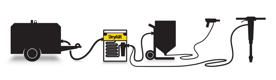 Moisture is a poor lubricant and causes premature failure of paving breakers, jackhammers, rivet busters and related air tools. DryAIR will make a significant difference in prolonging the life of your tools.