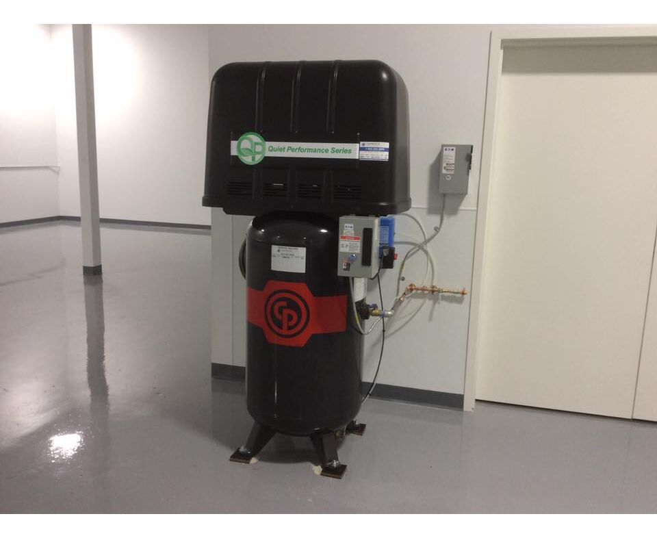 This is a very quiet piston air compressor. A great solution vs. a small rotary.