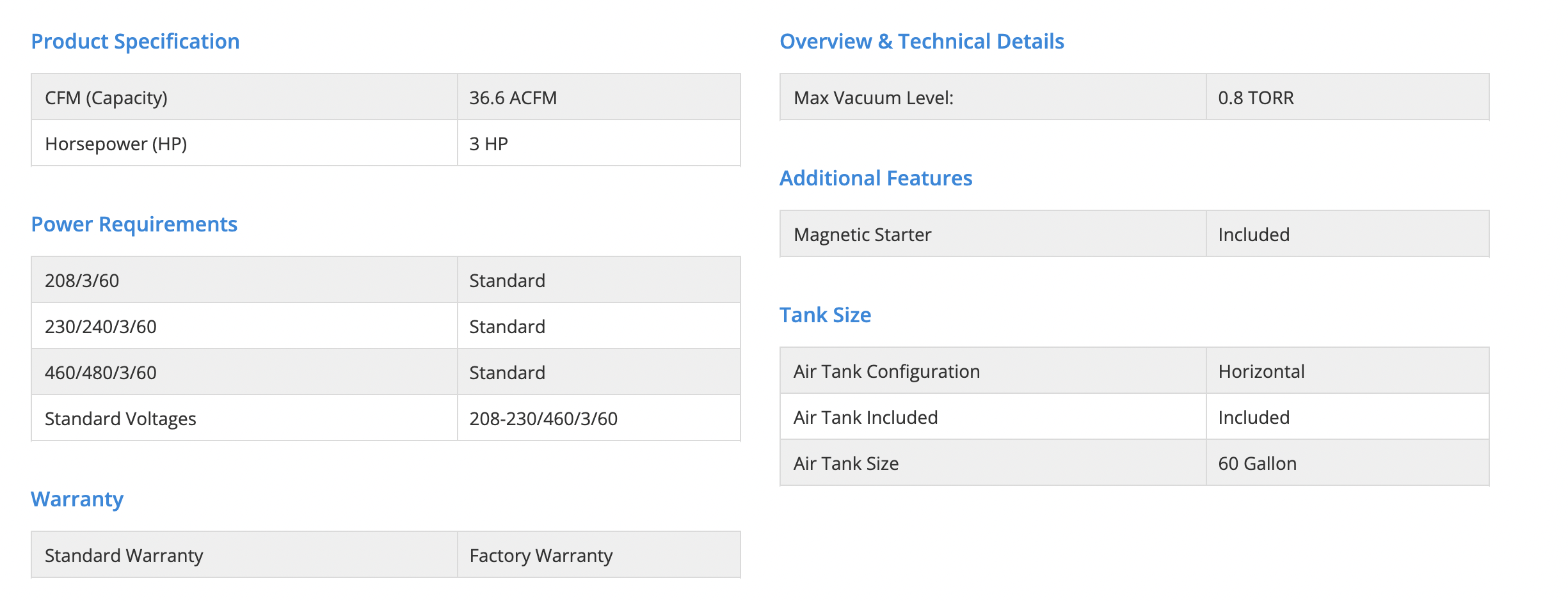- Electric Motor TEFC, 230/460, 3-Phase, 60 Hz (RVL003H is 110V, 1-phase, 60 hz)