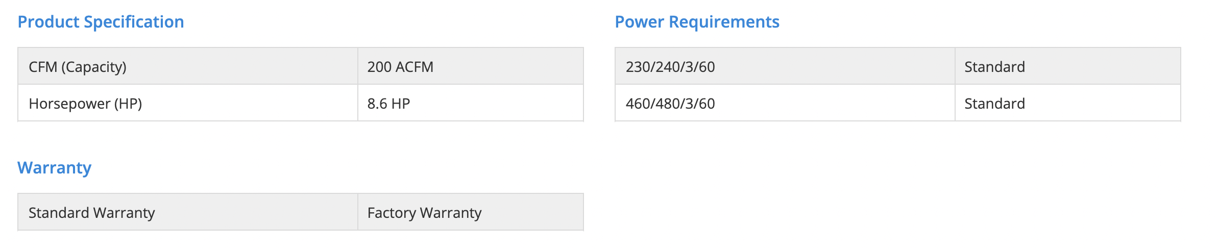 • Capacity (CFM):