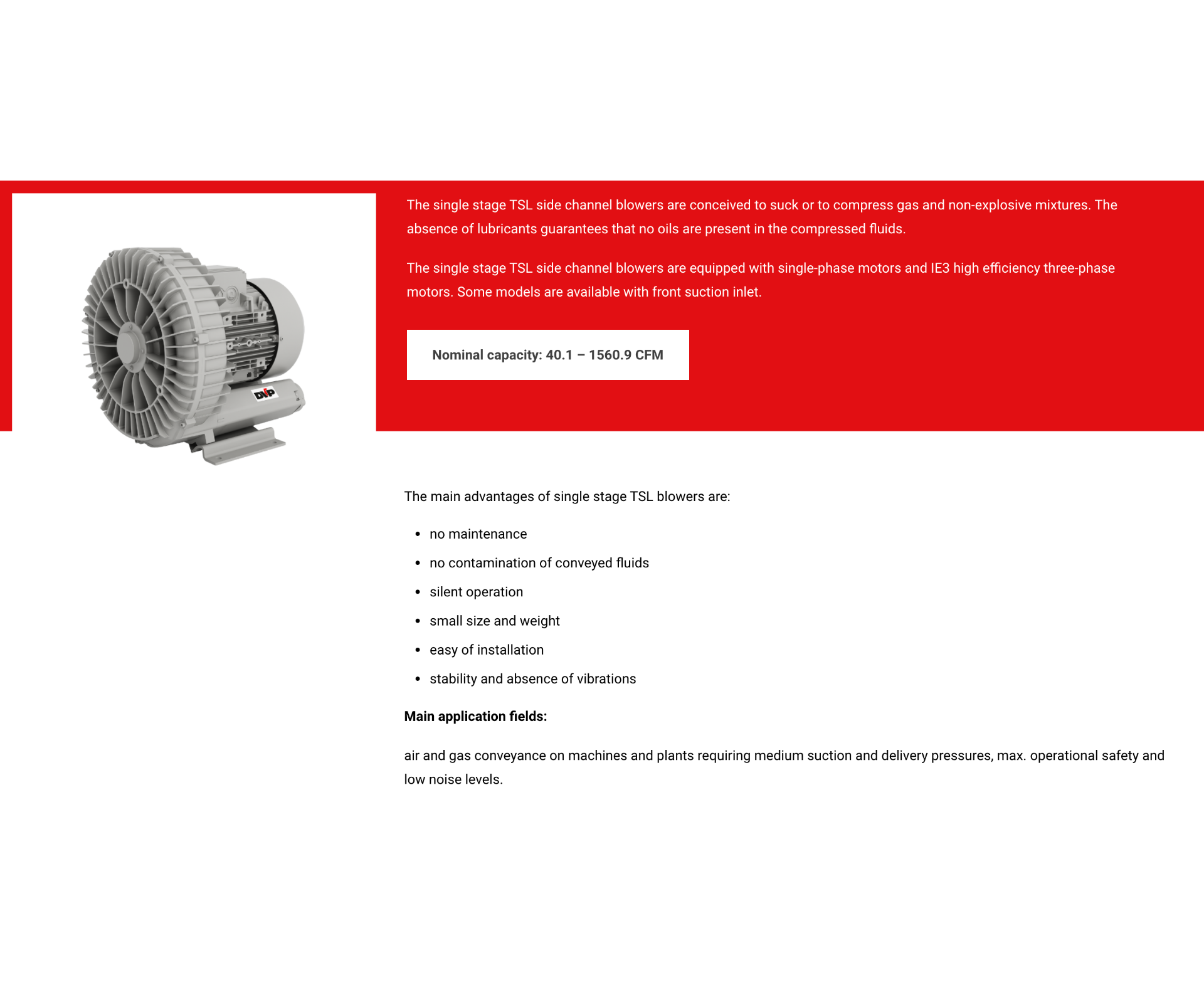 DVP - TSL 310-1 | Single-stage TSL Side Channel Blower - 4.6 HP, 221.5 CFM | 376mc/h 3.45kW 220-275V/380-480V/60Hz | 9412004