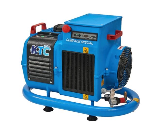 Portable rotary screw compressor with a 10.2 CFM capacity and K, 230/1/60 or 230-460/3/60.