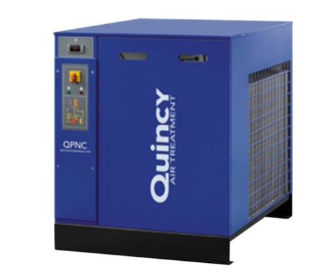 “Quincy refrigerated dryers play the important role of removing condensation from compressor systems. Without a dryer, moisture can accumulate in a compressor. With this moisture comes dirt and other particulate matter, which can cause oxidation and other types of premature wear on delicate compressor components. A refrigerated dryer eliminates the problem by cooling moisture in the air to approximately 37°F, where it condenses and can be removed from the compressor system by way of an automatic drain.” - Quincy Compressor
