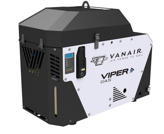 The Vanair gas powered portable rotary screw air compressor features a larger fuel tank to provide six and half hours of runtime (at 70% duty cycle). The design allows for a smaller footprint, which saves valuable trailer or truck bed space. Low idle RPMs reduce noise and quieter overall operation. Built-in sensors automatically unload the compressor during startup, and the auto start-stop turns on with air demand.